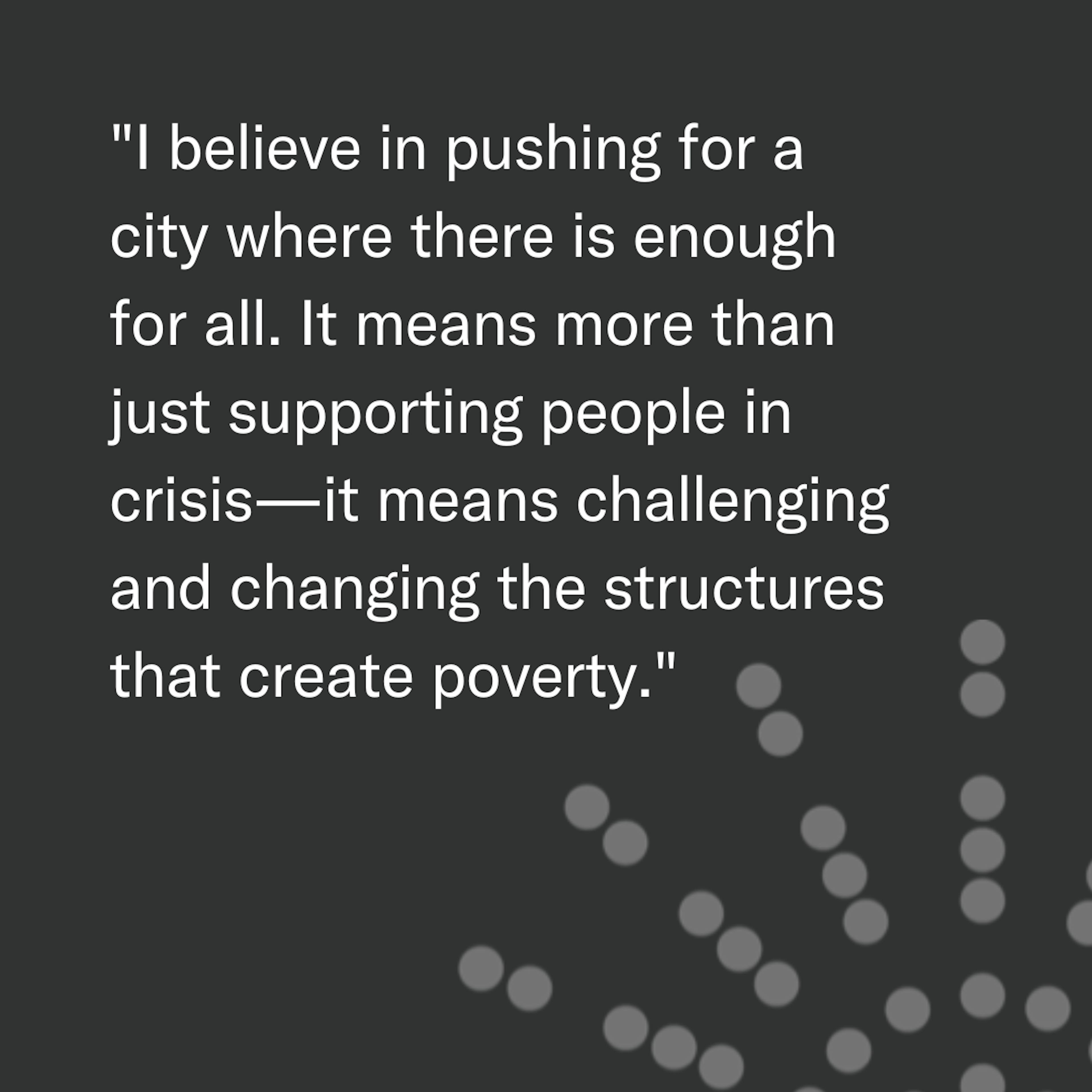 No one should have to rely on luck to live with dignity, and everyone deserves the chance to thrive. Enough for all means dignity, opportunity, and fairness for everyone who calls this city home."